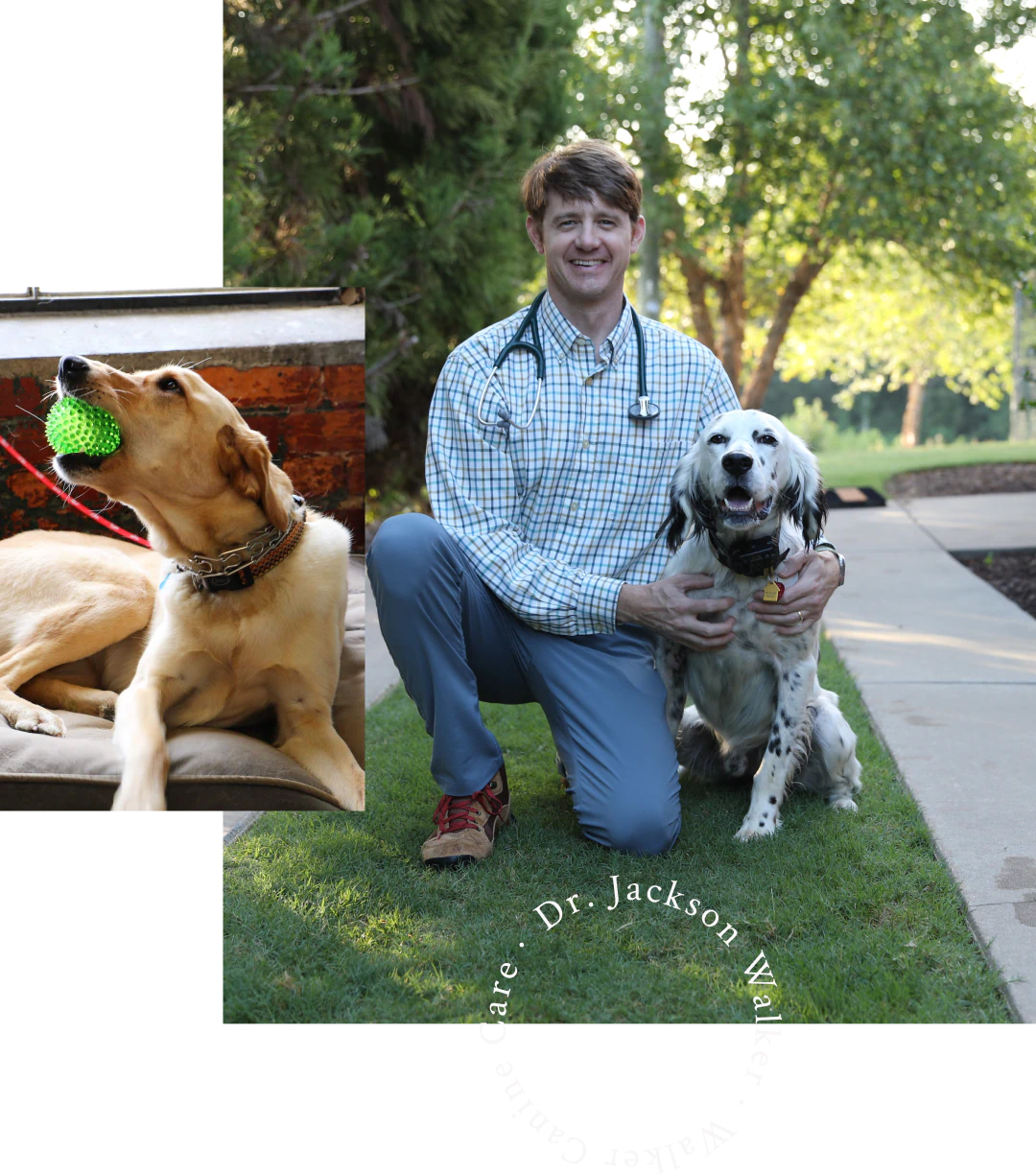 At Walker Canine Care, Dr. Jackson Walker leads our team with a deep passion for canine health. Specializing exclusively in dogs allows us to focus our expertise on providing breed-specific care . Each visit is thorough, personalized, and unrushed. Our approach ensures your dog receives the best care possible, tailored to their unique needs.
